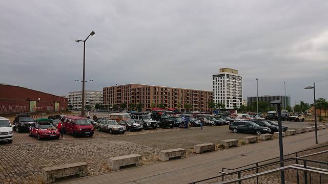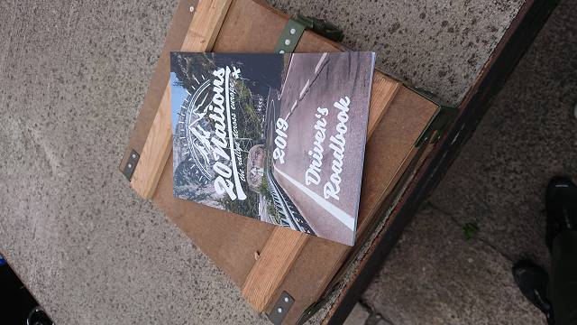 Am Start waren schon etliche Teams angekommen und wir verschafften uns erstmal einen Überblick. Voller Neugier und Vorfreude gingen wir zur Akkreditierung um uns anzumelden und das Starter-Kit inkl. Roadbook abzuholen. Nachdem die Formalitäten geklärt waren mussten wir natürlich als erstes einen Blick in Kiste werfen und das Roadbook durchblättern. Zurück am Auto frühstückten wir erstmal, hielten Schwätzchen und Dirk half dabei das Funkgerät von Uncle Benz in die Reihe zu bringen.