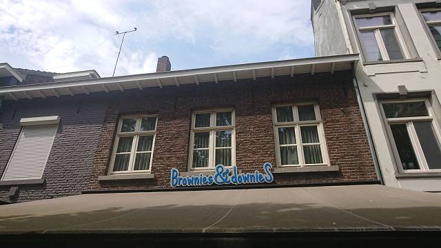 In Roermond bestand die Hürde darin, den Brownie Laden zu finden, um dort einen Aufkleber abzustauben, als Beweis, dass wir da waren. Auf der Suche nach einem Parkplatz kamen wir an einer Info-Säule vorbei, bei der es einen Stadtplan von der Innenstadt gab, also haben wir angehalten, Dirk ist fix rausgesprungen und hat ein Foto gemacht. So hatten wir wenigstens schonmal einen groben Anhaltspunkt wo wir den Laden finden konnten. Die Straße stand glücklicherweise im Roadbook. Nach etwas umherirren fanden wir den Laden, staubten den Aufkleber ab und On-Top gab es noch zwei Brownies für uns. Die Brownies waren mega lecker. Am Ende machten wir dann die weitere Routenplanung. Am ersten Tag war es uns noch erlaubt Autobahn zu fahren, was auch gut war, da wir noch etliche km den Tag abspulen mussten um am Tagesziel anzukommen.