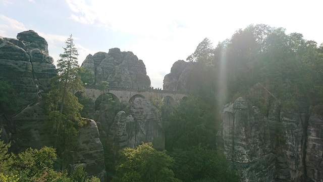 Da es erst früher Abend war, machten wir noch einen kleinen Abstecher zur Basteibrücke. Mittlerweile war hier auch nicht mehr ganz so viel los. Ohne die Tourimassen ist es ein wirklich schöner Ort. Wir genossen die Aussicht, vertraten uns die Beine und gingen zurück zum Auto. Endspurt für heute – der Campingplatz lag in der Nähe von Pirna.
