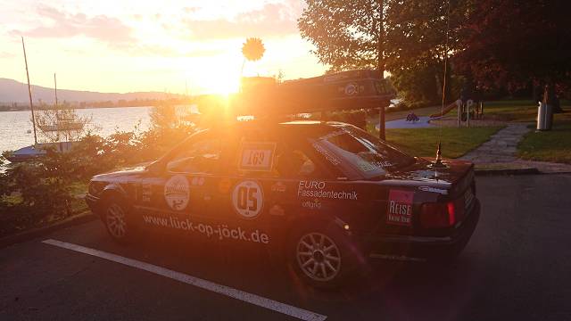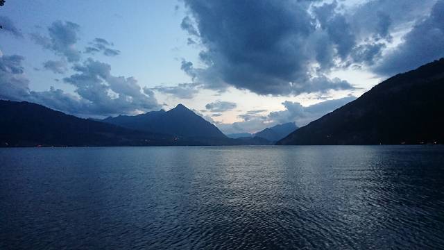 Nach ca. 13 Stunden im Auto kamen wir ziemlich ko und spät in Interlaken an. Noch schnell das Nachtlager aufgeschlagen und die Routenplanung für den nächsten Tag gemacht, dabei gab es noch einen kühles Getränk. Wir machten noch einen Abstecher zum Thuner See, unser Campingplatz war direkt am Ufer. Absolut herrlich die Lage und Aussicht und leider auch dementsprechend teuer. Als es dann dunkel wurde gingen wir auch ziemlich erschöpft ins Bett. Am nächsten Tag sollte der Wecker ja wieder dementsprechend früh klingeln.