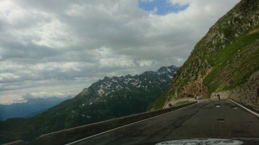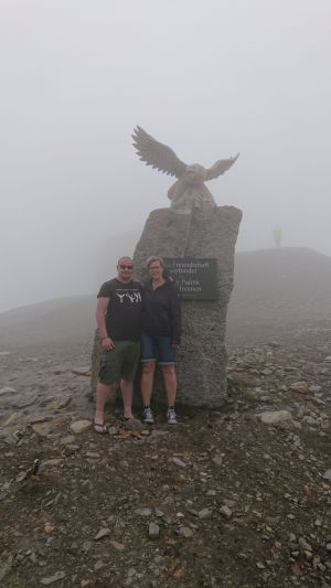 Auch diesen Tag ging es für uns wieder früh aus dem Zelt. Nach ausgiebigen Frühstück und Sachen einräumen sind wir dann doch erst um 08.30 auf der Strecke gewesen. Die erste Etappe hatte uns etwas Zeit gekostet weil wir irgendeinen Mini Pass gefahren sind. Wirklich hübsch aber zeitintensiv. Das eigentliche Etappenziel war das Timmelsjoch. Wir hatten wirklich Pech mit dem Wetter und haben kaum was gesehen. Durch den Nebel war es auch fast schwierig unsere Aufgabe zu finden - Ein Adler auf einer Steinsäule. Mit ihm sollten wir ein Foto machen. Von der Säule zum Auto waren es ca. 30m, aber Günti war vor lauter Nebel nicht zu sehen. Auf der italienischen Seite wurde dann das Wetter und somit die Aussicht auch wieder besser.