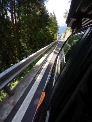 Auf der langen Bergabpassage haben wir dann etwas langsamer gemacht um Güntis Bremsen zu schonen. Die waren zwischendurch ziemlich heiß. Wir sind dann also ganz entspannt Richtung Jaufenpass gefahren. Hier wurde es dann wieder kuschelig in Günti, mit Fenster auf war es aber dann doch noch gut auszuhalten. Wir sind durch viele kleinere und größere italienische Orte gekommen und haben dabei noch das ein oder andere Alpenpanorama genossen.