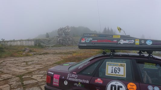 Wir erledigten noch schnell zwei Aufgaben mit dem Hyper Hyper Rallye Team (Scheibe putzen bei einem anderen Team Auto und das Auto für ein Foto kapern) und fuhren los. Tagesziel heute: Kasanlak in Bulgarien. Über 500km galt es heute zu fahren. Eigentlich kein Problem, wenn man sich an die Hauptverkehrstraßen hält - dachten wir zumindestens...