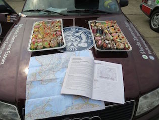 Heute haben wir uns nach einem gemütlichen Frühstück auf den Weg zum Start auf dem Fischmarkt gemacht. Alle Fahrzeuge der Rallyeteilnehmer zu sehen war schon eine spannende Sache. Um die Wartezeit bis zum Start um 12 Uhr zu überbrücken, hatten wir eine Menge Muffins dabei, die wir verschenkt haben. Hierfür nochmal vielen Dank an Anne, die uns die Muffins gebacken und super verziert hat. Da alle Muffins weg sind, denken wir, dass die Aktion gut angekommen ist. |