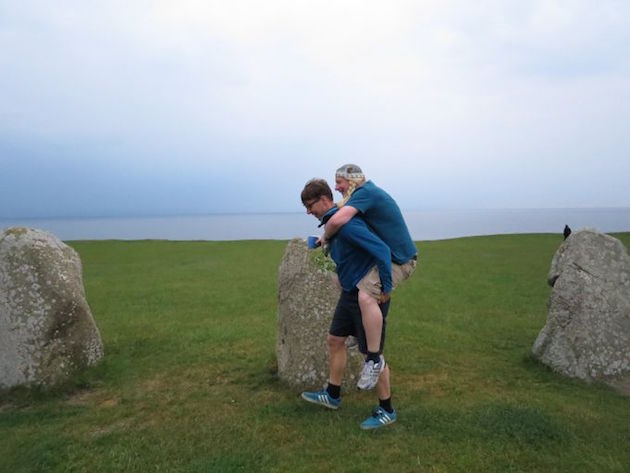 Doch unser Besuch in Dänemark war nur kurz... Hinter Kopenhagen überqueren wir die Öresundbrücke, denn das Ziel für heute Abend liegt schon in Schweden. In Schweden angekommen waren wir noch kurz was shoppen. Das besondere Highlight unserer Shopping Tour ist eine "Tube" Käse mit Schinkengeschmack. Die Tagesaufgabe bestand in einer traditionellen Wikinger Krönung in Ales Stenar, mit dem 4 Elementen: Sand (siehe Oben), Holz (das wir unterwegs in einem Wäldchen aufgelesen haben), Wasser aus der Ostsee und dem Wind der unserem Wikinger Häuptling ums Haar wehte... |