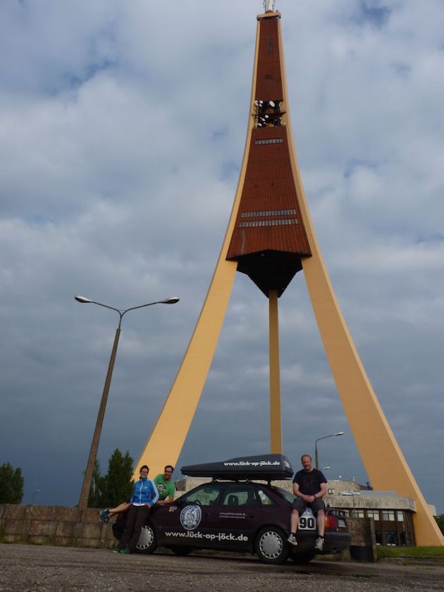 Gegen 19:15 Uhr standen wir vor unserer Tagesaufgabe. Ein Foto mit dem höchsten Bauwerk in der EU machen, dem Fernsehturm von Riga. |