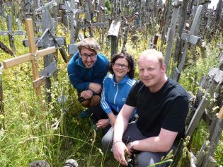 Nach dem wir gestern zwei Hauptstädte an einem Tag besucht haben, waren wir heute in vier Ländern. Durch Lettland, Litauen, Russland ging es nach Polen. Aber langsam... Dort hieß es, den Berg der Kreuze zu finden, einen Hügel auf dem mehrere zehntausend Kreuze stehen. Unsere Aufgabe war es, ein eigenes Kreuz auf dem Berg zu platzieren und ein Foto zu schießen. |