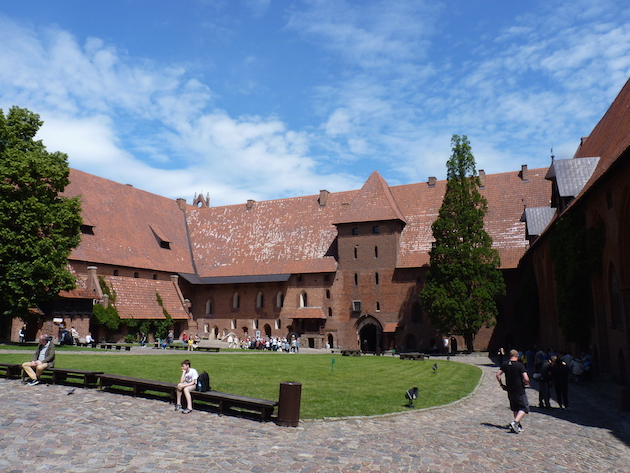 Nach dem Aufstehen in Frombork (Frauenburg) haben wir gesehen, dass in der Nacht noch andere Rallyeteams auf dem Zeltplatz gelandet waren. Keiner hatte damit gerechnet, dass es an der Grenze nach Polen so lange dauern würde. Dann führte uns unser Weg zur Marienburg, dem größten Backsteingebäude Europas. Dirk und Christian haben sich ein bisschen wie Ritter gefühlt. |