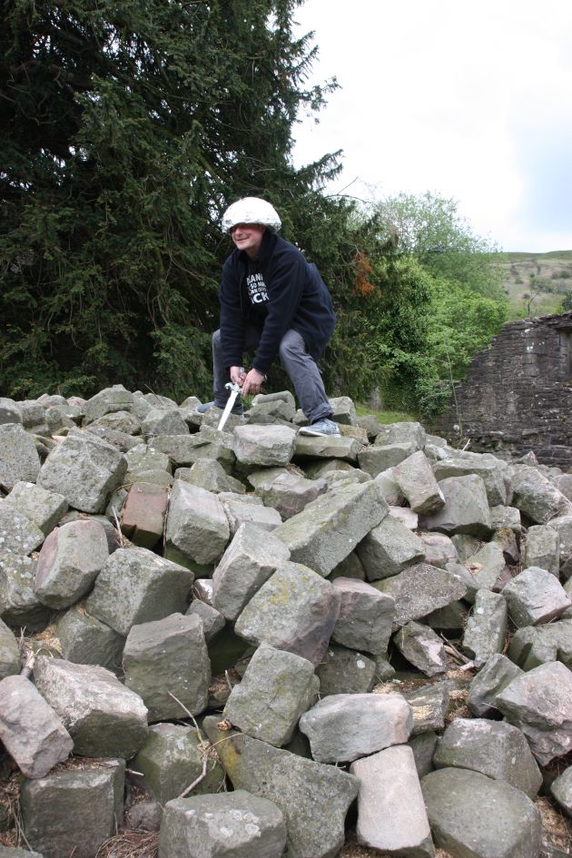 Nach einer eiskalten Nacht ging es um 8.30 Uhr wieder auf die Straße. Die Challenge heute war es, die Partylocation am Abend zu finden. Hierfür fuhren wir über eine der "Severn Bridges" um nach Wales zu kommen. Die erste Roadchallenge des Tages startete in Abergavenny. Dort deckten wir uns mit Grillfleisch für den Abend ein. Von dort aus ging es über die wunderschöne, aber zum Teil sehr schmale "Old Herford Road" zur "Llanthony Priory" einer alten Priorei, an der viele Steine herumlagen und wir direkt eine der Aufgaben erledigen konnten. Für das Foto zum Thema "King Arthur & Excalibur" verwandelte Dirk sich in einen Ritter... Danach führte uns die Straße zu einem beeindruckenden Ausblick über Teile von Wales. Hier versuchten einige Teams ein Schaf/Lamm zu fangen, um eine weitere Aufgabe zu erledigen. Leider erfolglos :-( Für die zweite Roadchallenge des Tages sprang Dirk in Aberystwyth in die kalten Fluten der Irischen See, dabei wurden wir beide von einigen Menschen seltsam angeguckt. Dabei meinte Dirk, dass es gar nicht sooo kalt war. Jetzt hieß es "ab zur Partylocation"!!!! Nach einer guten Stunde Fahrt sind wir auf einer Schafsweide oberhalb von Llanwnog angekommen und konnten den Abend mit Grillfleisch und Lagerfeuer genießen. |